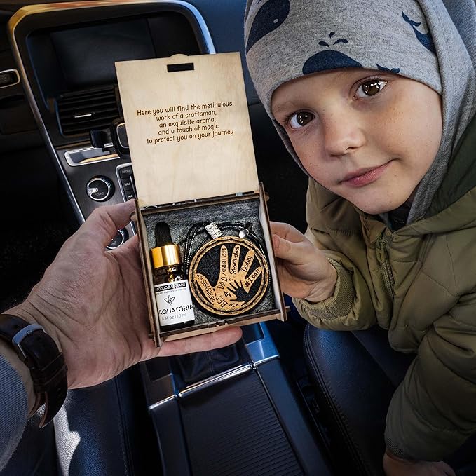 Wood Car Air Freshener — Handcrafted Air Freshener — Father’s Hands Fragrance Oil Diffuser in Wooden Gift Box — Father’s Day Gift Set for Car with diAquatoria Fragrance Oil - 10 ml