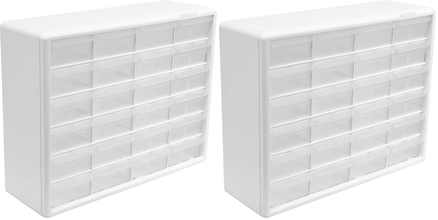 Akro-Mils 24-Drawer Plastic Drawer Storage Cabinet for Garage Organization, Bead Organizer, Building Bricks Storage, Teacher Toolbox, Makeup Organizer, 20-Inch W x 6-Inch D x 16-Inch H, 10124 White
