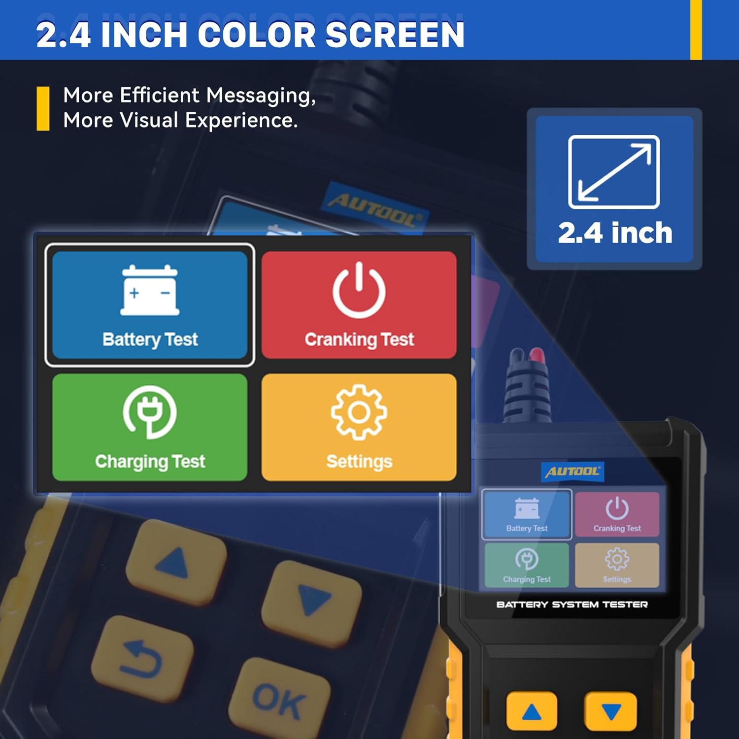AUTOOL Car Battery Tester 12V 24V Battery Load Tester 30-2000 CCA Automotive Battery Tester, Cranking Charging System Analyzer, Color Screen Data Review Reverse Polarity Protection