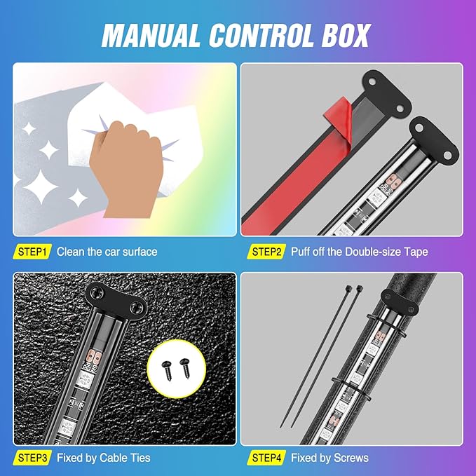 - Dream COLOR: Our car lights covered 16 million colors and tones for selection and make your car personality. At the same time, it has a variety of scene modes for you to choose. Allowing you to enjoy rainbow-like lighting effects.