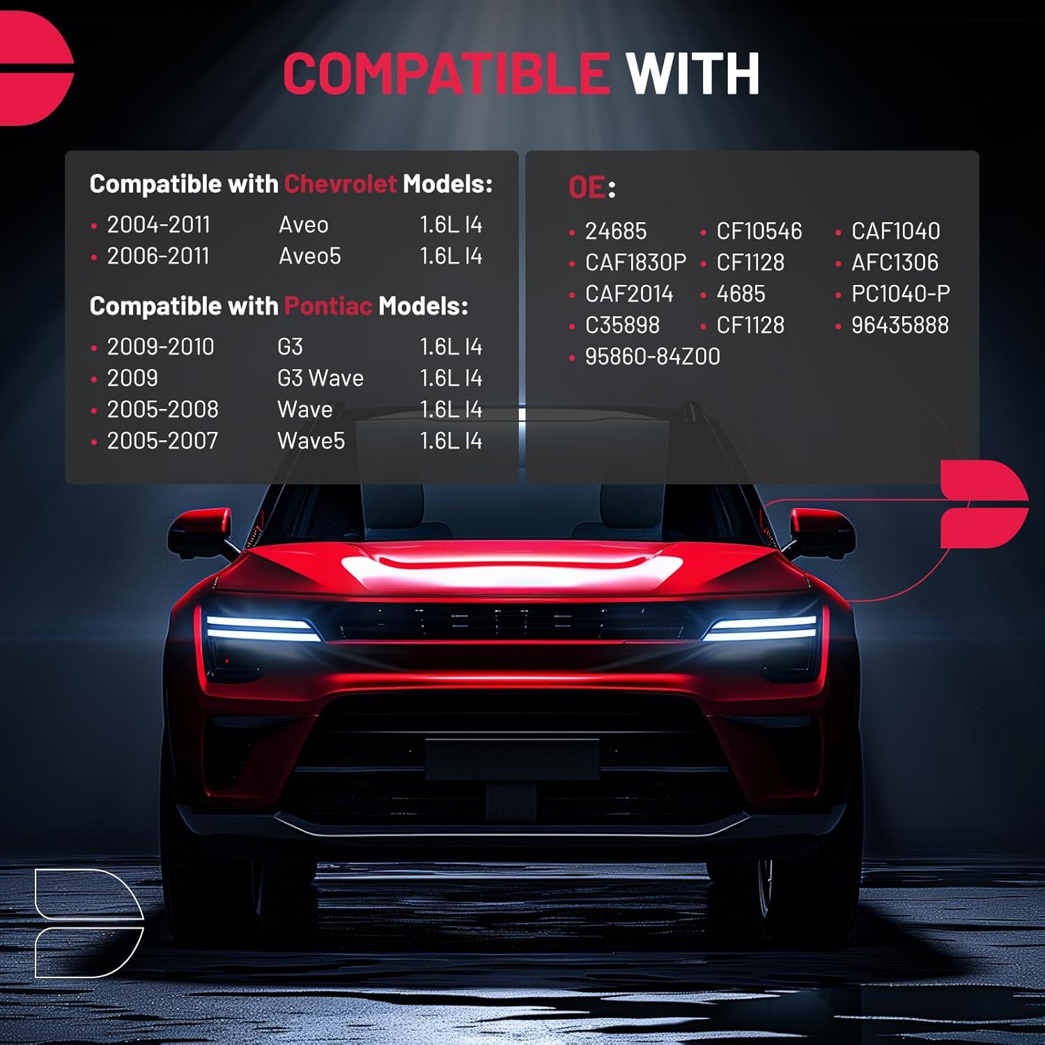 - [Replaces Part] 24685, CF10546, CAF1040, CAF1830P, CF1128, AFC1306, CAF2014, 4685, PC1040-P, C35898, CF1128, 96435888, 95860-84Z00