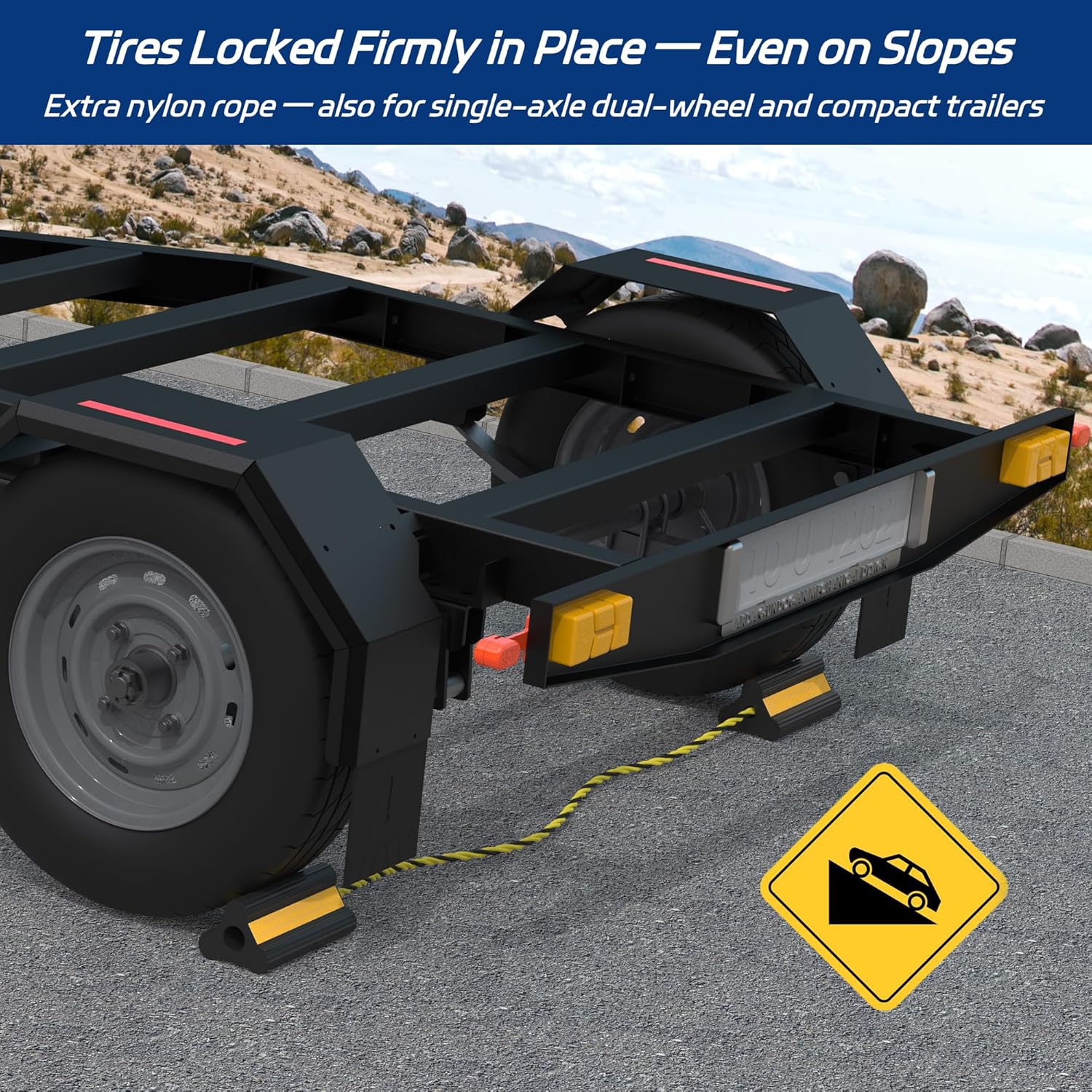 Heavy Duty Rubber Wheel Chock, Non-Slip Tire Stopper with Durable Nylon Rope, for Cars, Trucks, RVs, and Aircraft, 1 Pair