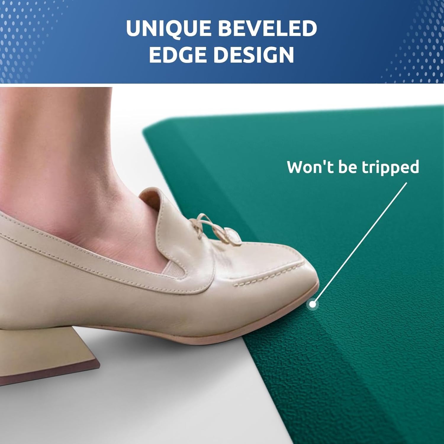 - SAFETY DESIGN: the diamond-shaped design on the bottom of anti fatigue mats keeps the mat in place and prevents slippage; the bevel edge reduces the risk of tripping on the mat