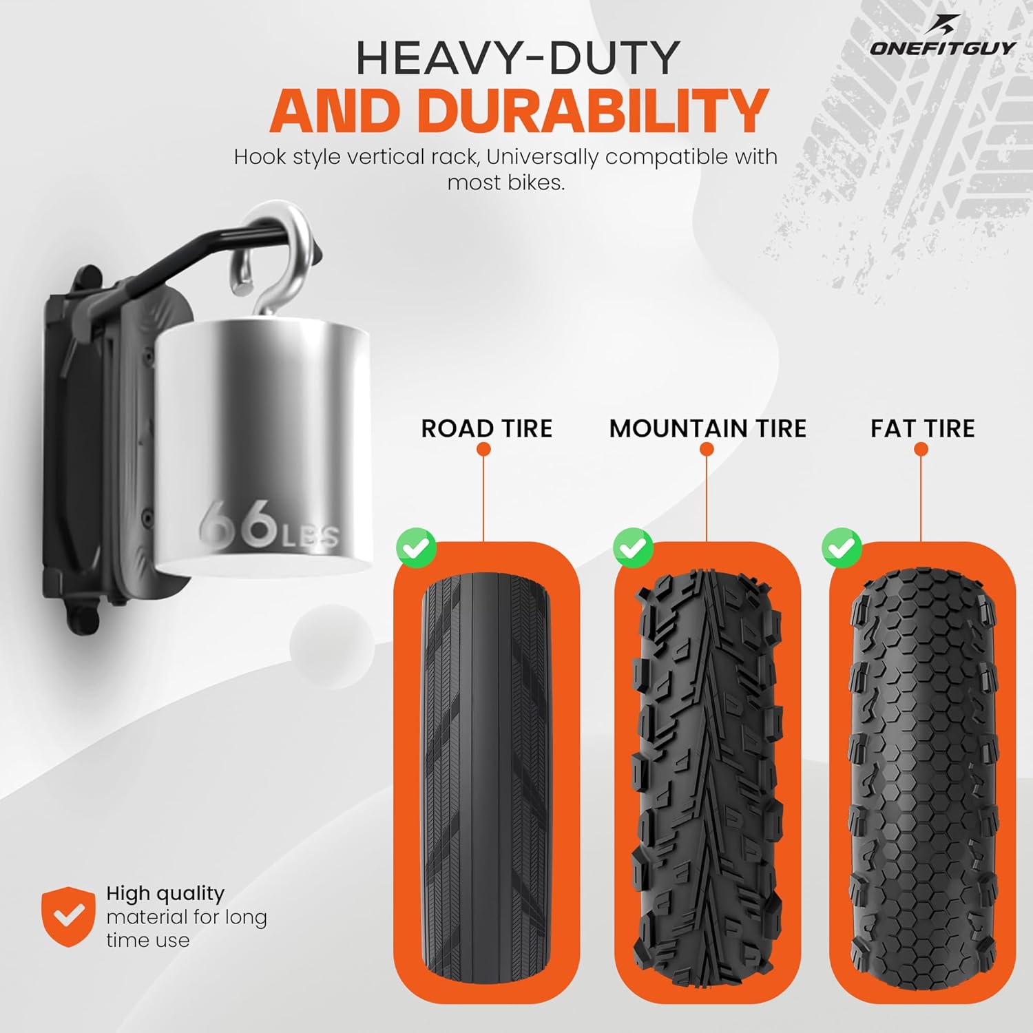 - šššš®š«š & ššš«š¬ššš¢š„š: This heavy duty design supports up to 66lbs and works with most bikes, making it a suitable bike rack wall mount for organizing your space and ensuring safe bicycle wall mount storage.