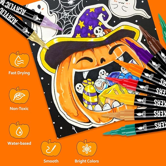 - 【Versatile Dual-Tip Design】: Unleash your creativity with our acrylic markers featuring a unique dual-tip design. The extra-fine tip is perfect for intricate details, while the brush tip allows for expressive brushstrokes. From delicate line work to bold sweeps, these markers adapt effortlessly to your artistic vision.