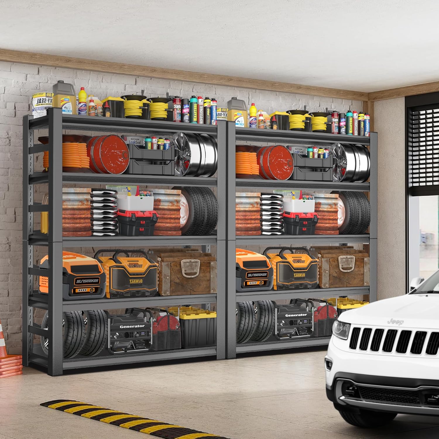 - ăExtremely Sturdy & Durable Garage ShelvingăConstructed from high-strength premium cold-rolled steel with advanced powder-coated technology, this metal shelving unit resists rust, oxidation, and wear. The industrial-grade coating not only enhances aesthetics but also boosts durability, making it a heavy duty garage shelving solution for long-term use