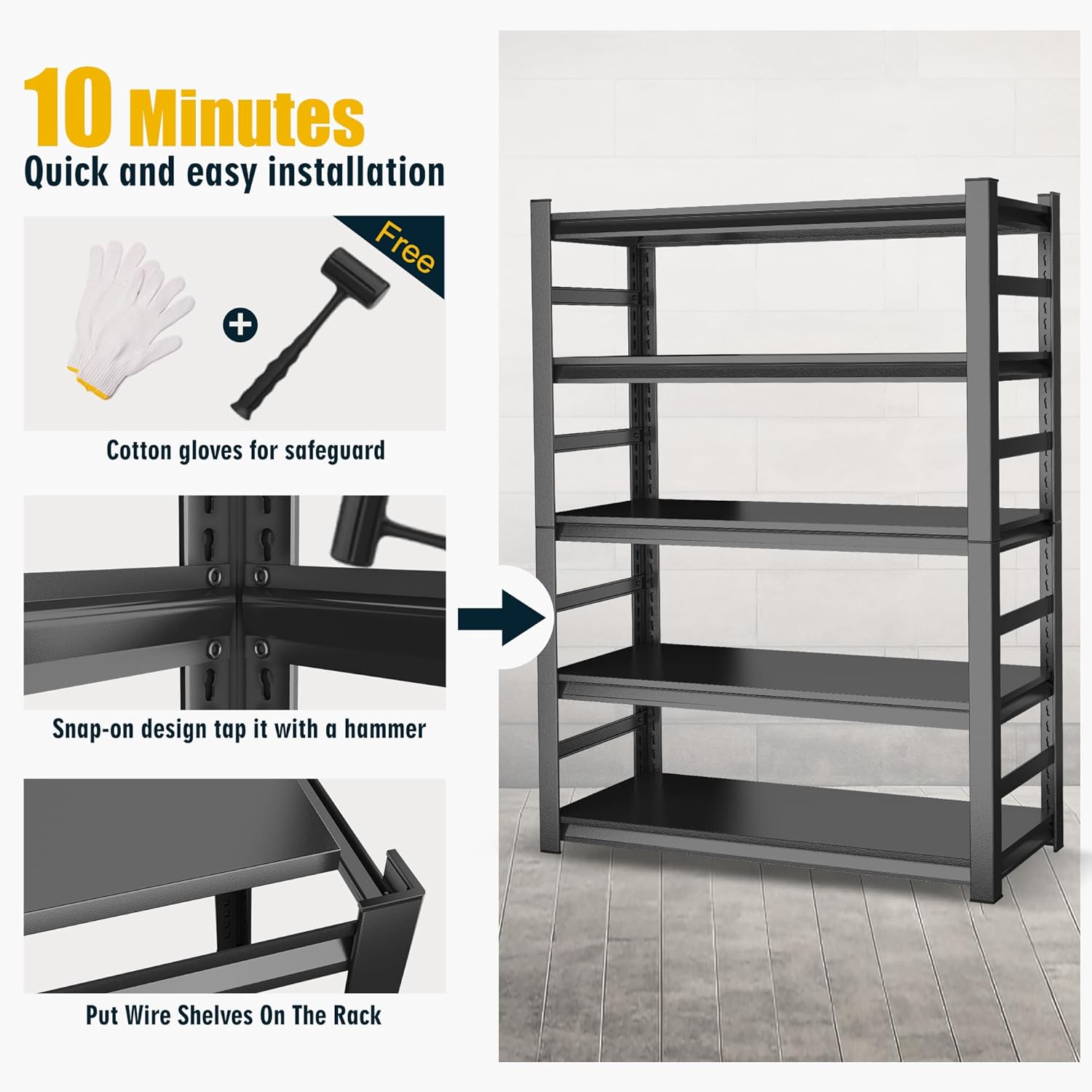 - ă10-Minute Easy Assembly & Thoughtful ServiceăNo nuts or bolts neededâeffortlessly assemble each standalone garage shelf in minutes! To simplify setup, we include a hammer and gloves. Plus, enjoy 24/7 customer support with every purchase. If any parts are damaged or missing, contact us for a swift resolution within 24 hours