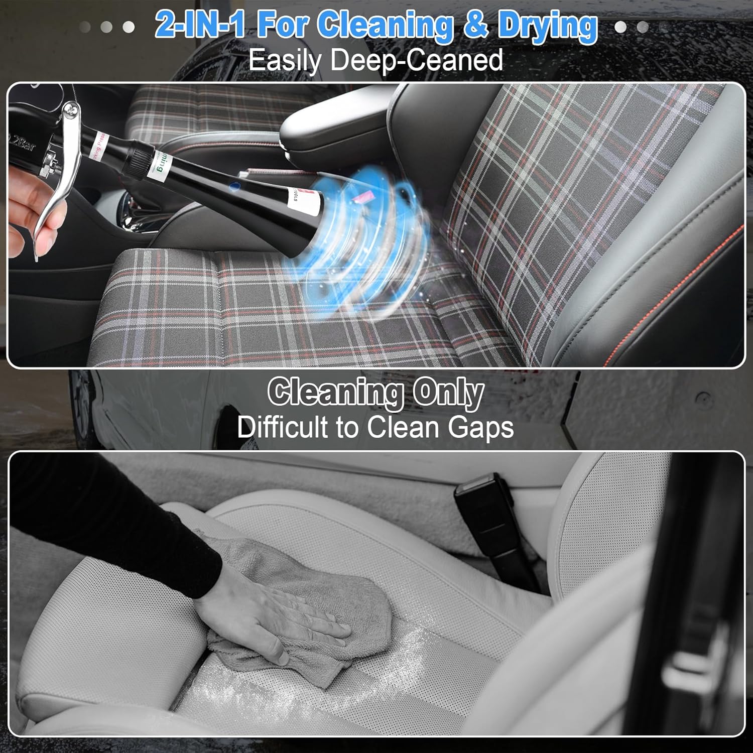 - 【Efficient & Effortless】Conical design directs air to create a powerful wind. Equipped with a 360° high speed rotation hose, covering a larger area than air compressor direct air flow. Saves time and effort, improves cleaning efficiency. Car interior cleaning tool quickly cleans car surfaces, cleans and air dries in seconds. Saves time and effort and improves cleaning efficiency