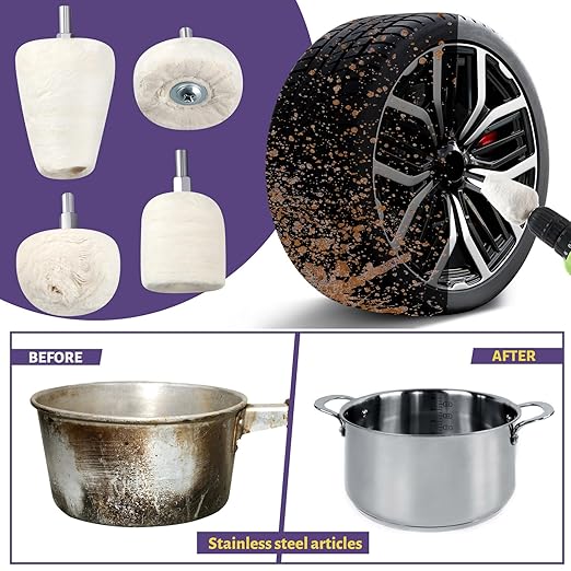 - Practical Usages: buffing wheel rake contains beech handle and metal rake, available for removing dry compound or excess compound, cleaning and trimming the polishing wheel surface; Mushroom shape drill polishing pad is designed for cleaning and polishing the rims, holes, crevices, repairing the faded item to be in good condition; Solid polishing wax is available for various kinds of polishing