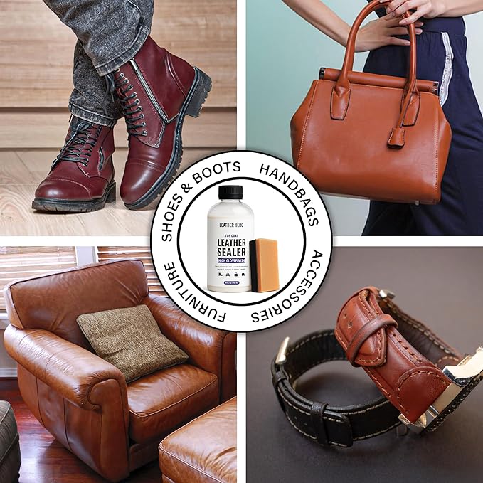 Leather Hero Top Coat – Leather Sealant & Protective Finish for Dye, Paint, Car Seats, Shoes & More – Scratch-Resistant Color Restorer with Applicator – 4oz (High Gloss Finish)
