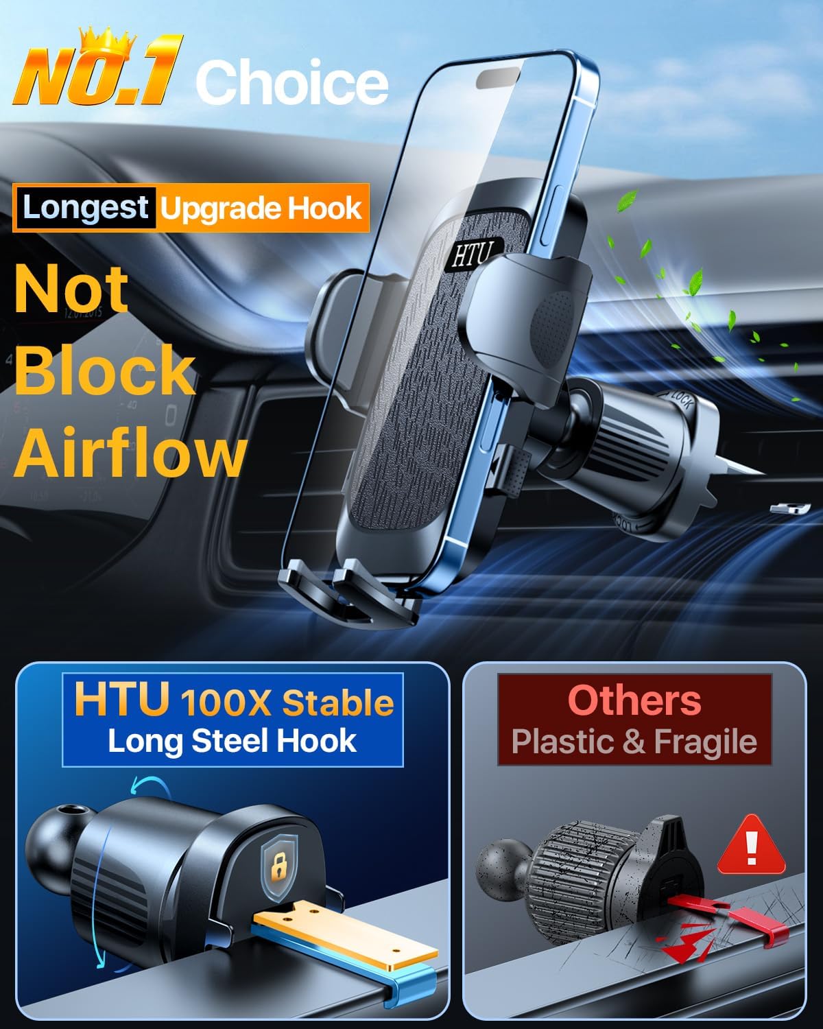 - [Widely Compatibility and Big Phones & Thick Case Friendly] Adjustable foot, wider and deeper clamp arm ensure this phone holder in car is suitable for big phones and thick case. The phone car holder is compatible with iPhone16/iPhone16 Plus/iPhone16 pro/iPhone 16 pro max/iPhone15/iPhone15 Plus/iPhone15 pro/iPhone 14 pro max/ iPhone 13 pro max/ 13 pro/ 13/ 13 mini/ 12 pro max/ 12 pro/ 12/ 12 mini/ 11 pro max/ 11/ SE/XS/XR/XS Max/X/SE/ Samsung Galaxy S22/ S22 Ultra/ S22+ /S21