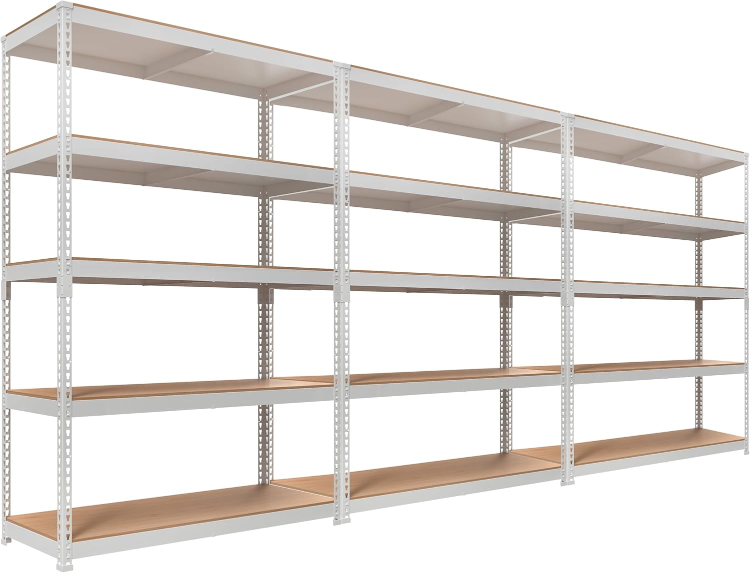 HOMEDANT White 5 Tier Laminated Boltless Heavy Duty Garage Storage Adjustable Wide Size Metal Shelving Unit Utility Rack Shelves Organization Shelf Shed Warehouse 47.7" W x 18.2" D x 71.3" H 3Pack
