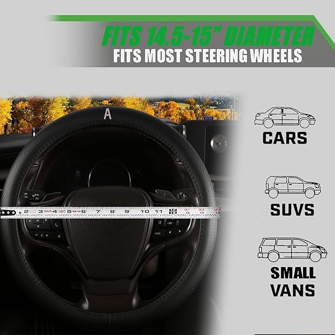 - UNIVERSAL SIZE: This real leather cover fits steering wheels with a diameter of 14.5-15 inches(37-38.5cm). Compatible with most models of Ford, Honda, Toyota, Hyundai, Kia, Nissan, Lexus and Mercedes-Benz. Whether you drive a sedan, SUV, or RV, this cover will provide a perfect fit and effortless installation. If you are not sure the diameter of your steering wheel, please check the detailed list of applicable car models below for your reference.