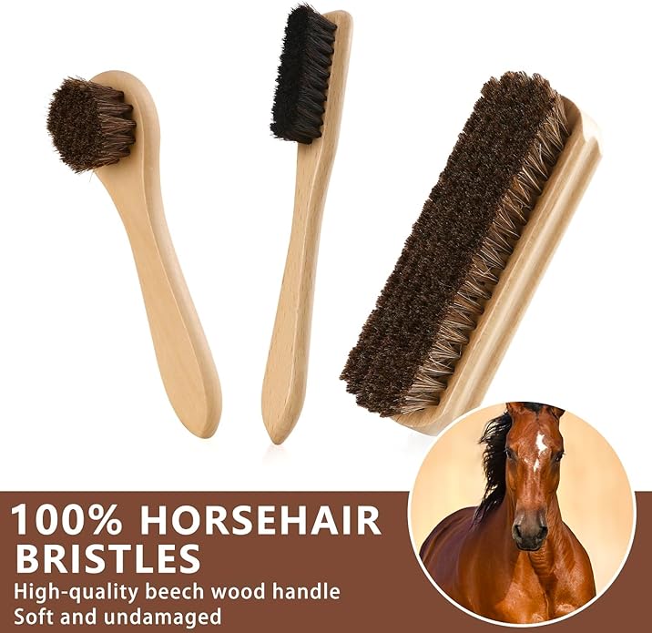 - 🏆Ultimate Leather Restoration Set: The Leather Care Kit with every tool needed for flawless leather upkeep.5.9’and6.7’premium 100% horsehair bristle cleaning brush,a precision detailing brush,1.76oz/50g mink oil for leather boots,1.76oz/50g Saddle Soap and Waterproofing Wax,3 dual-layer polishing cloth,Microfiber cloth,Flannel storage bag and User Manual,Whether vintage leather or maintaining daily Leather Boot,this kit delivers professional-grade results for a flawless,like-new finish