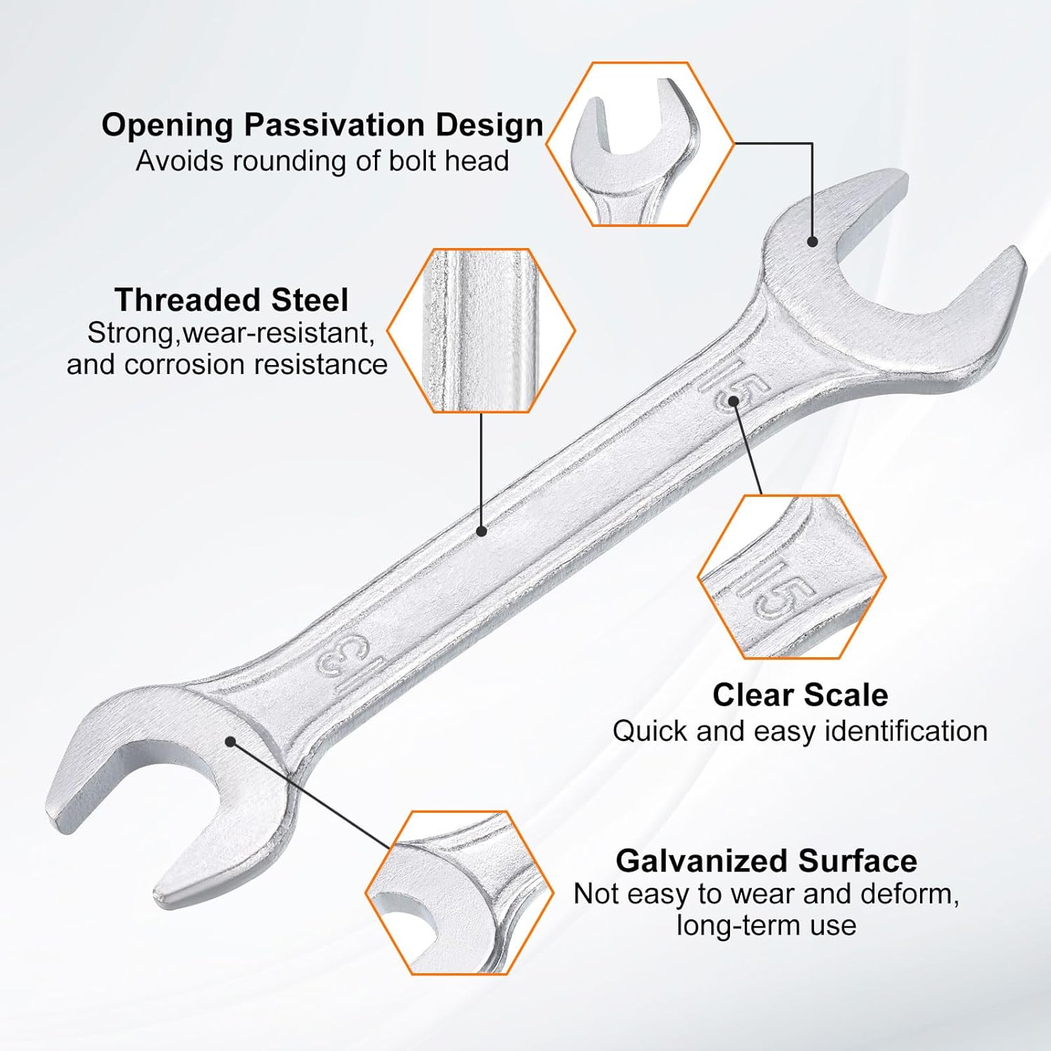 - Material - Our double open-end wrench is made of threaded steel with high hardness and excellent wear resistance. The surface galvanizing improves its wear resistance, keeps its surface smooth and reduces wear, is not easy to deform, and can be used for a long time.