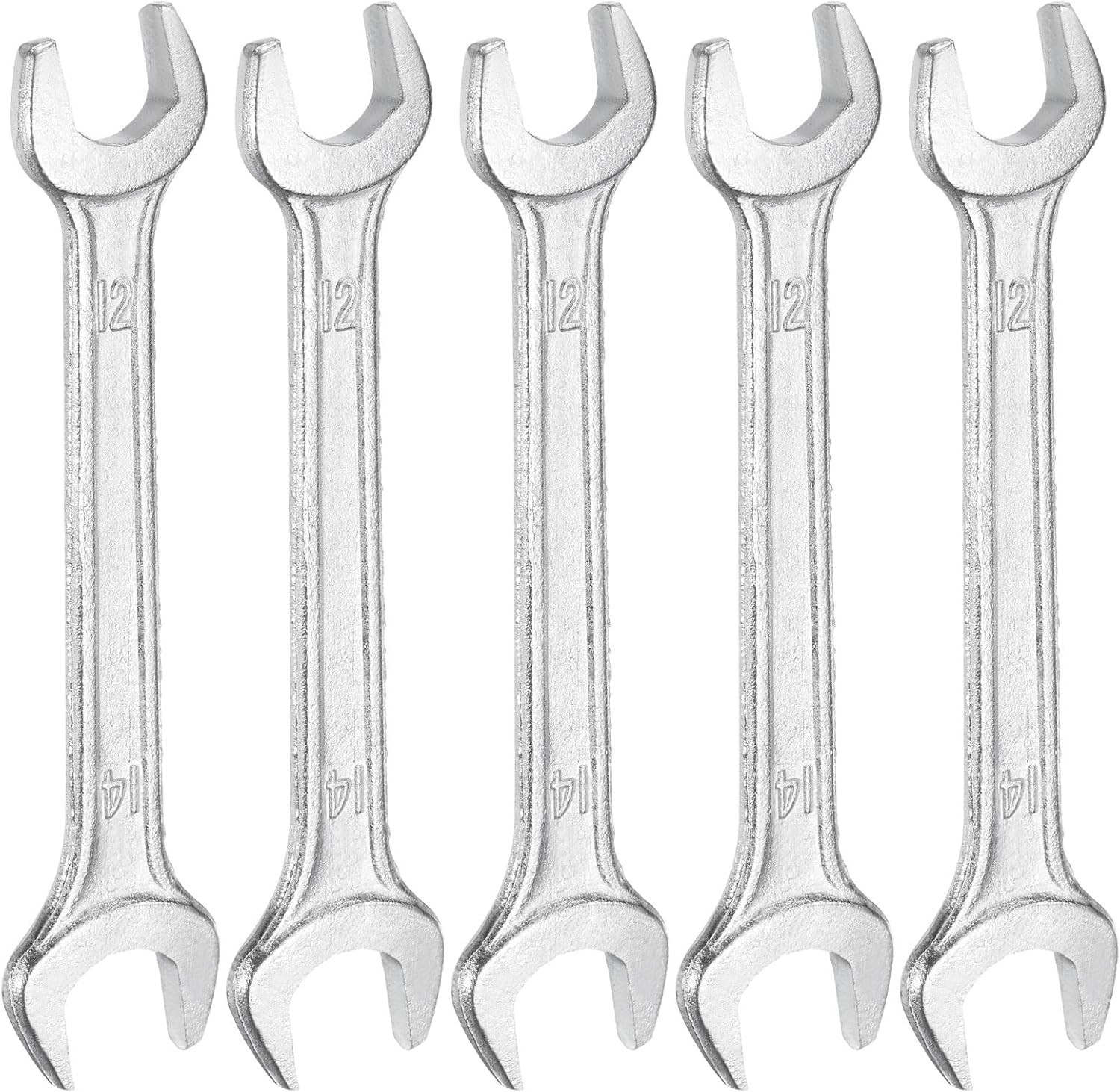 HARFINGTON 5pcs Double Open End Wrench 12mm x 14mm Metric 15 Degree Offset Angle Small Flat Head Wrench Galvanizing Open Ended Spanner for Automotive Repair Furniture Assembly