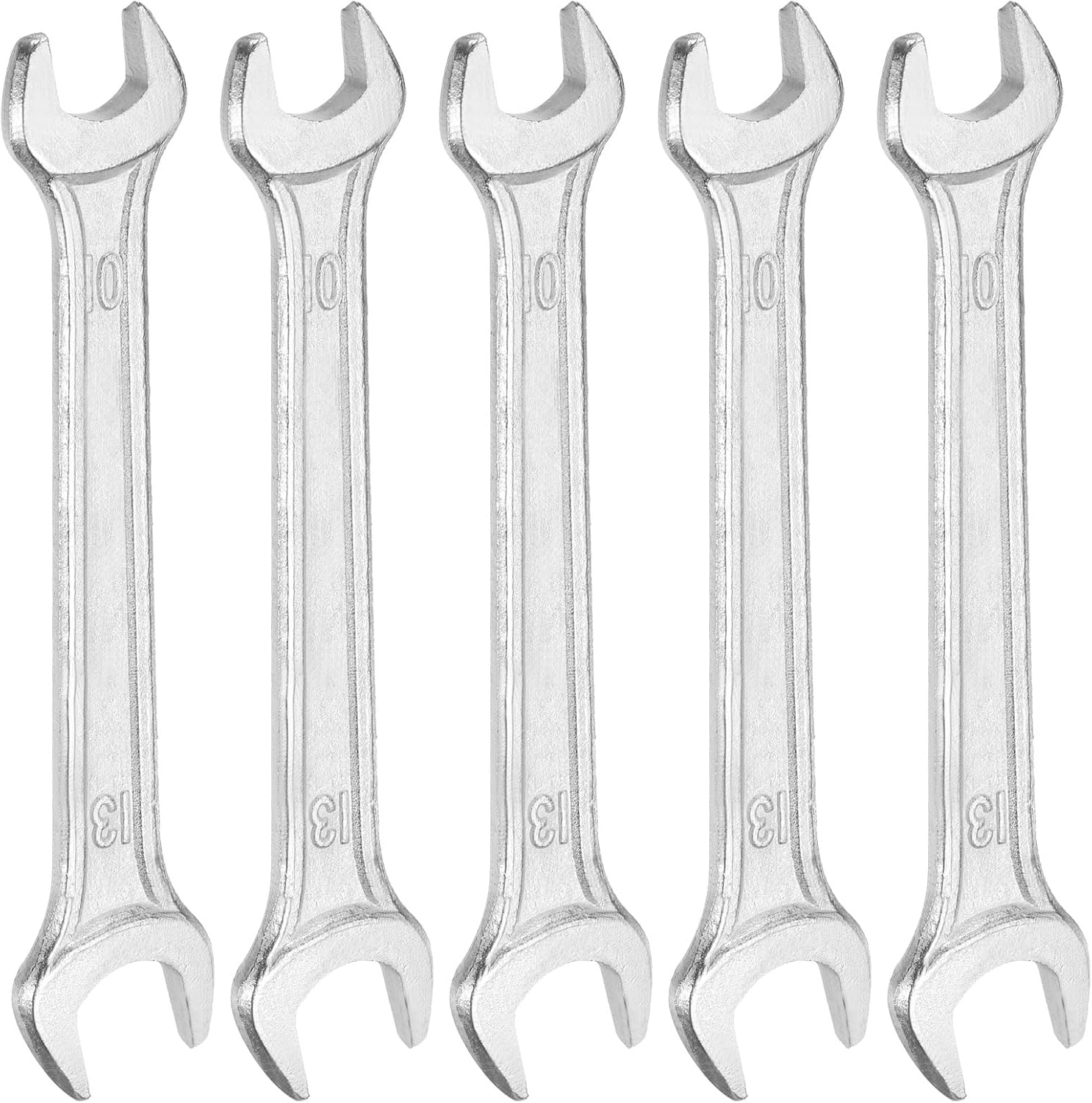 HARFINGTON 5pcs Double Open End Wrench 10mm x 12mm Metric 15 Degree Offset Angle Small Flat Head Wrench Galvanizing Open Ended Spanner for Automotive Repair Furniture Assembly