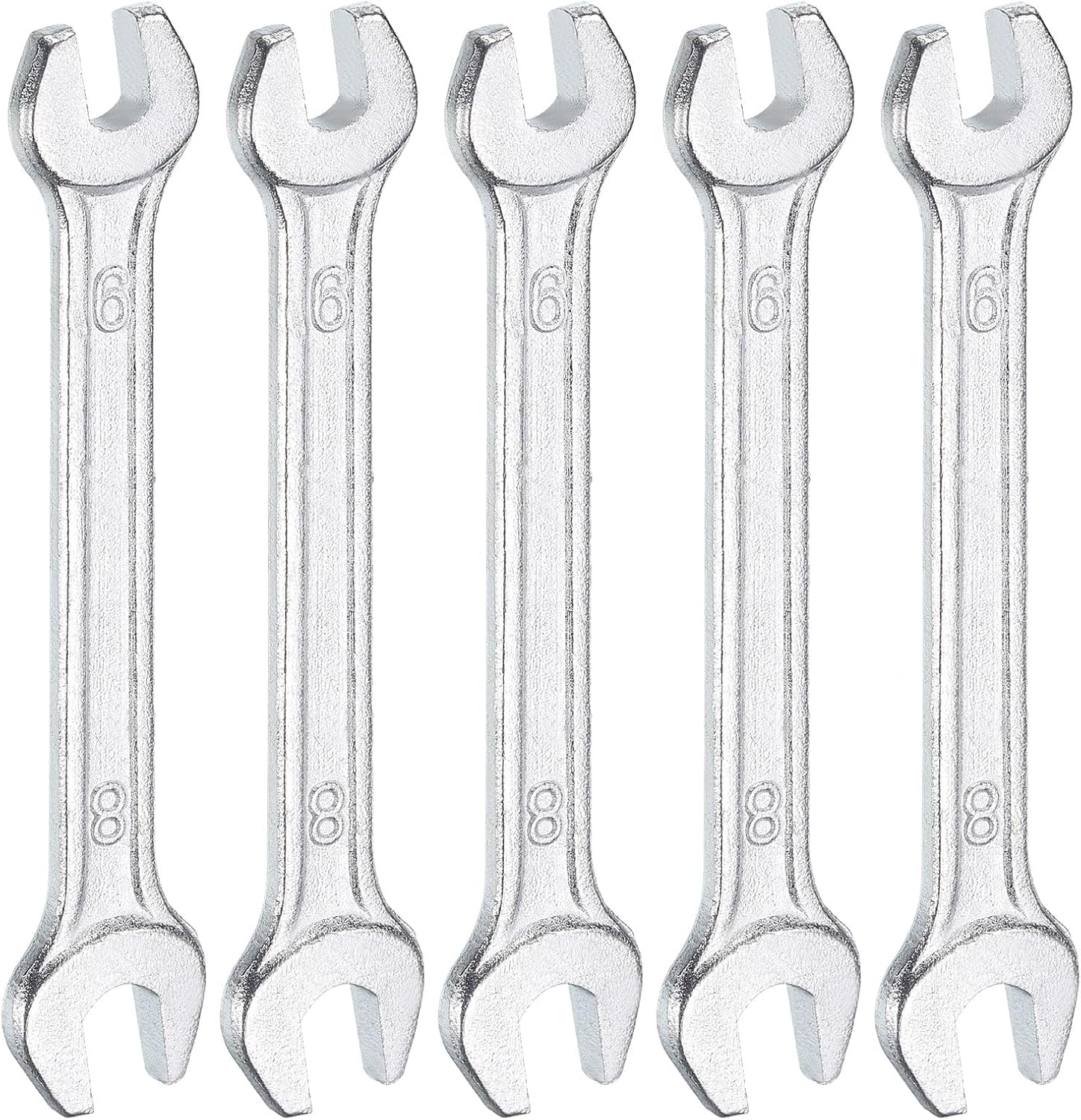 HARFINGTON 5pcs Double Open End Wrench 6mm x 8mm Metric 15 Degree Offset Angle Small Flat Head Wrench Galvanizing Open Ended Spanner for Automotive Repair Furniture Assembly