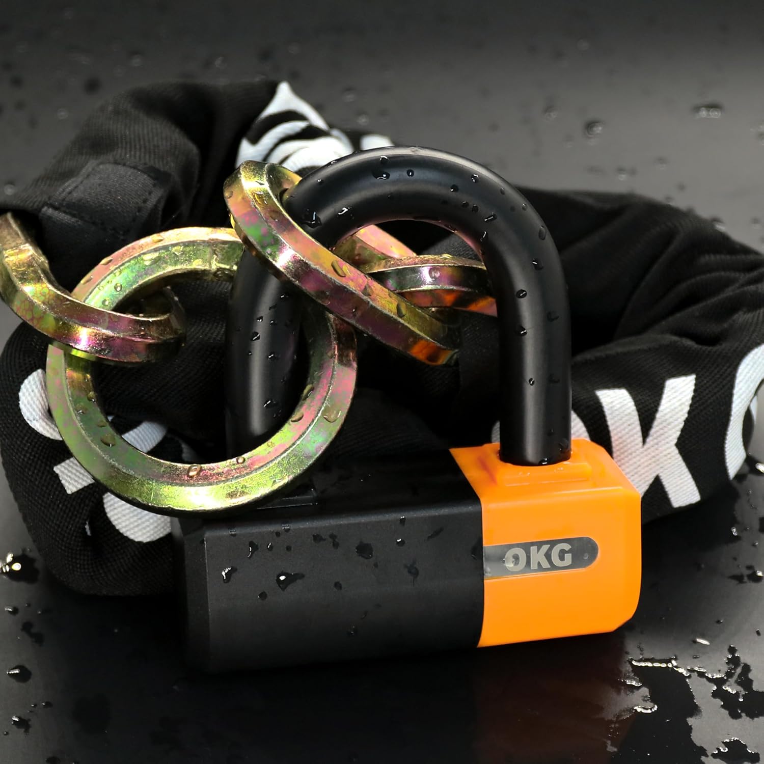 - PROTECT YOUR VALUABLES FOR 24/7 PEACE OF MIND: At OKG Brands, we offer high-quality security solutions like robust security chains, U-locks, folding locks, and motorcycle anchors to protect your belongings. Our products are designed for medium to high burglary risk and can withstand cuts from tools. With a lifetime warranty, you can trust that your investment is secure for years to come.