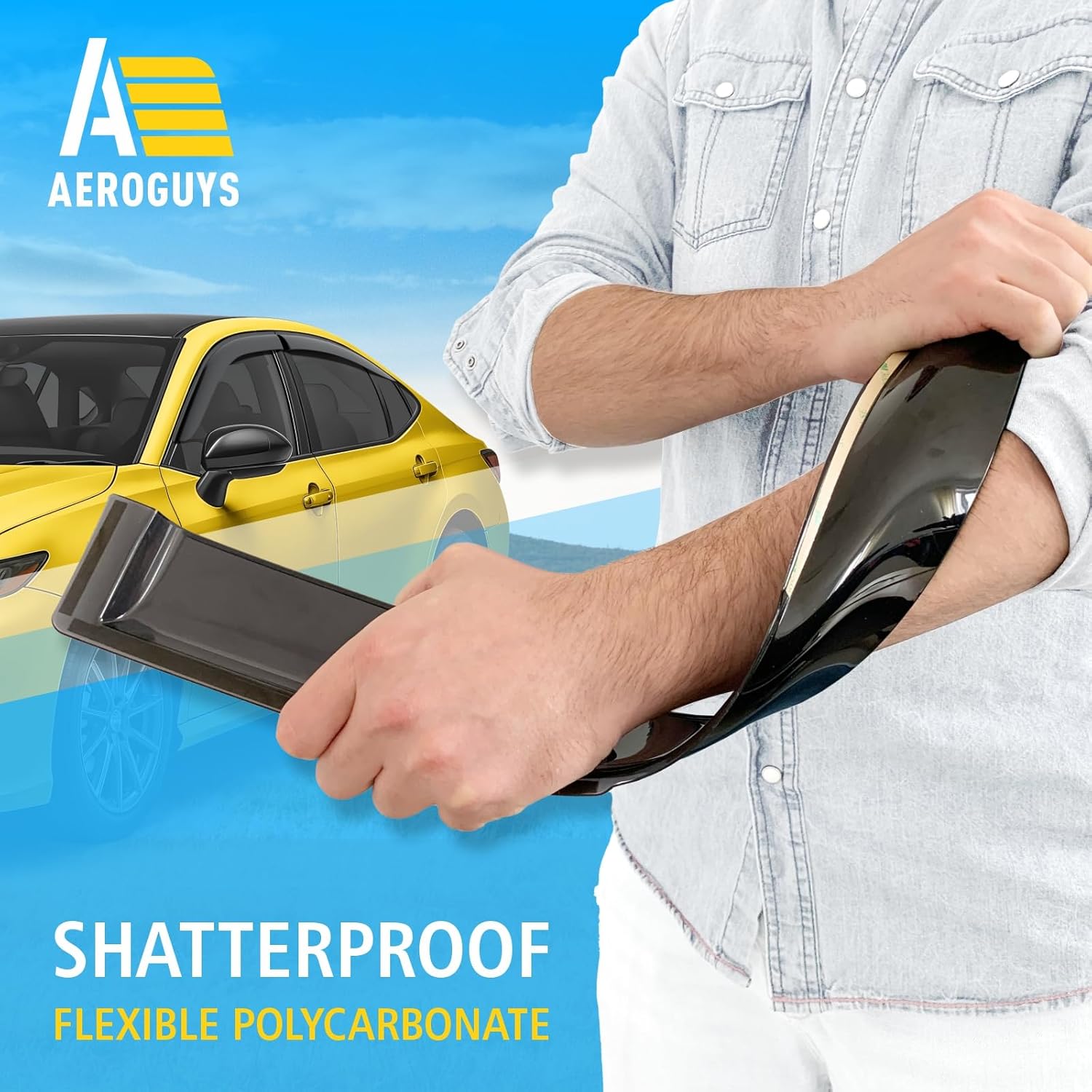 - Incredibly Durable AEROGUYS Auto Window Deflectors β They are made with strong and tough polycarbonate which is clear and scratch-resistant. They also provide UV protection making your ride more comfortable under all weather conditions.