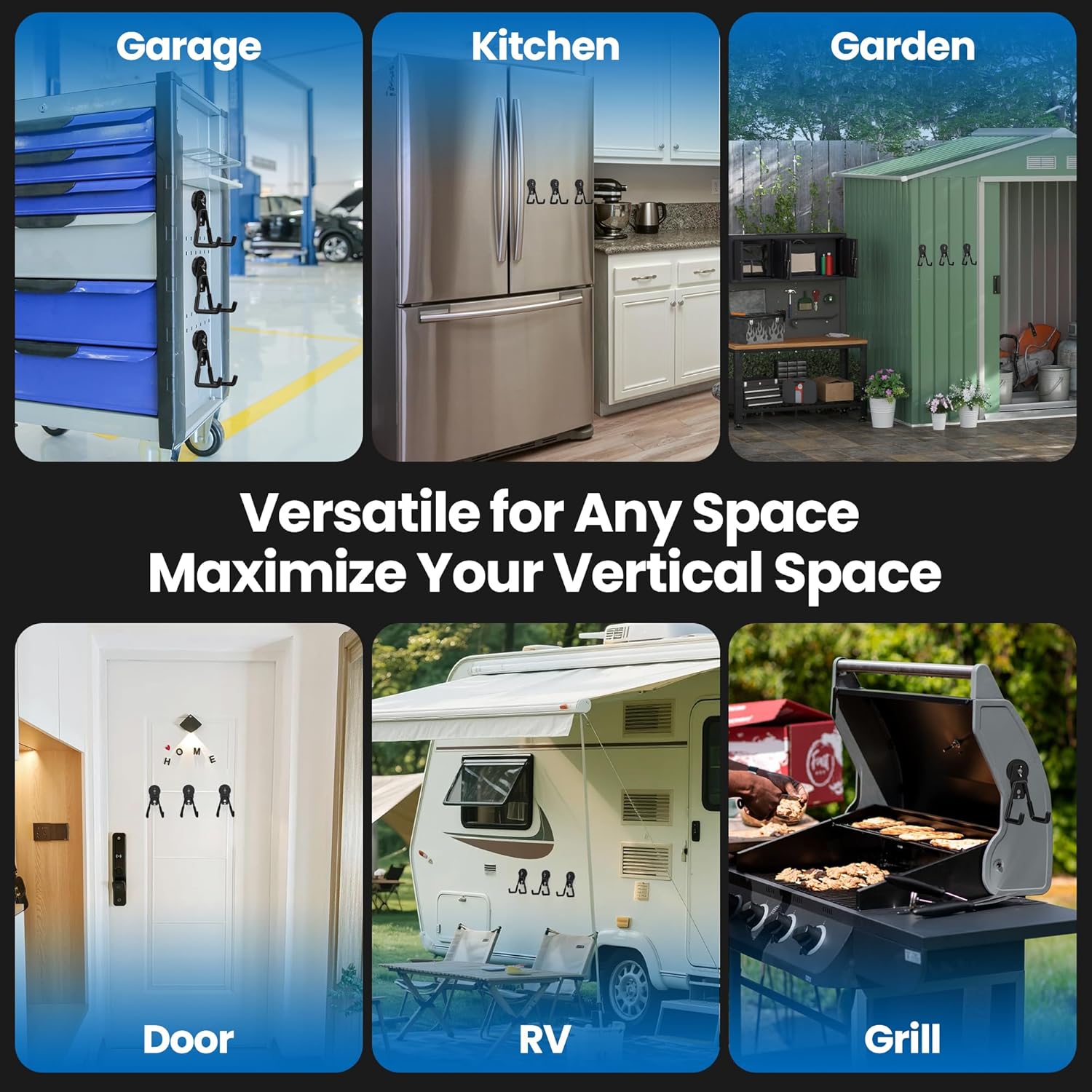 - 【Multi-Pack Magnetic Hooks Heavy Duty】 Our strong magnetic utility hooks are upgraded with high-performance neodymium magnets, offering a versatile storage solution for homes, garages, workshops, kitchens, gardens, and more. With 8 Pack large magnetic hooks in one set, they meet daily storage needs for both light and heavy items, keeping your space organized and clutter-free