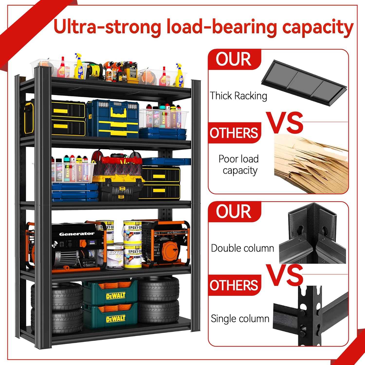 - 【Versatile Application For Any Space】 This multifunctional shelving unit is perfect for garages, basements, workshops, and more. Its industrial black design seamlessly integrates into various settings, providing an ideal storage solution that enhances both functionality and aesthetics in your home or workspace.