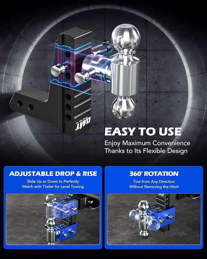 - Heavy-Duty Towing: Orion Motor Tech's adjustable trailer hitch features a dual-ball design, with the 2-5/16" ball rated for 12,500 lb. and the 2" ball for 8,000 lb., giving you the strength for any towing task