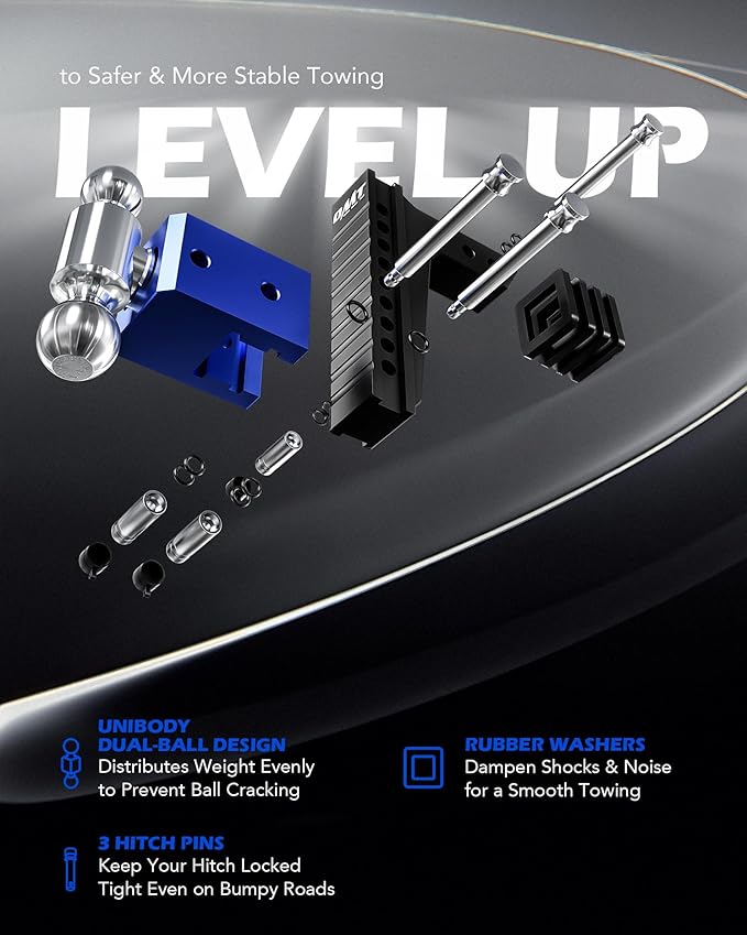 - Lightweight Yet Robust: Crafted from aircraft-grade aluminum alloy, this drop hitch resists bending under heavy loads. The chrome-plated balls protect against corrosion and wear for long-term use