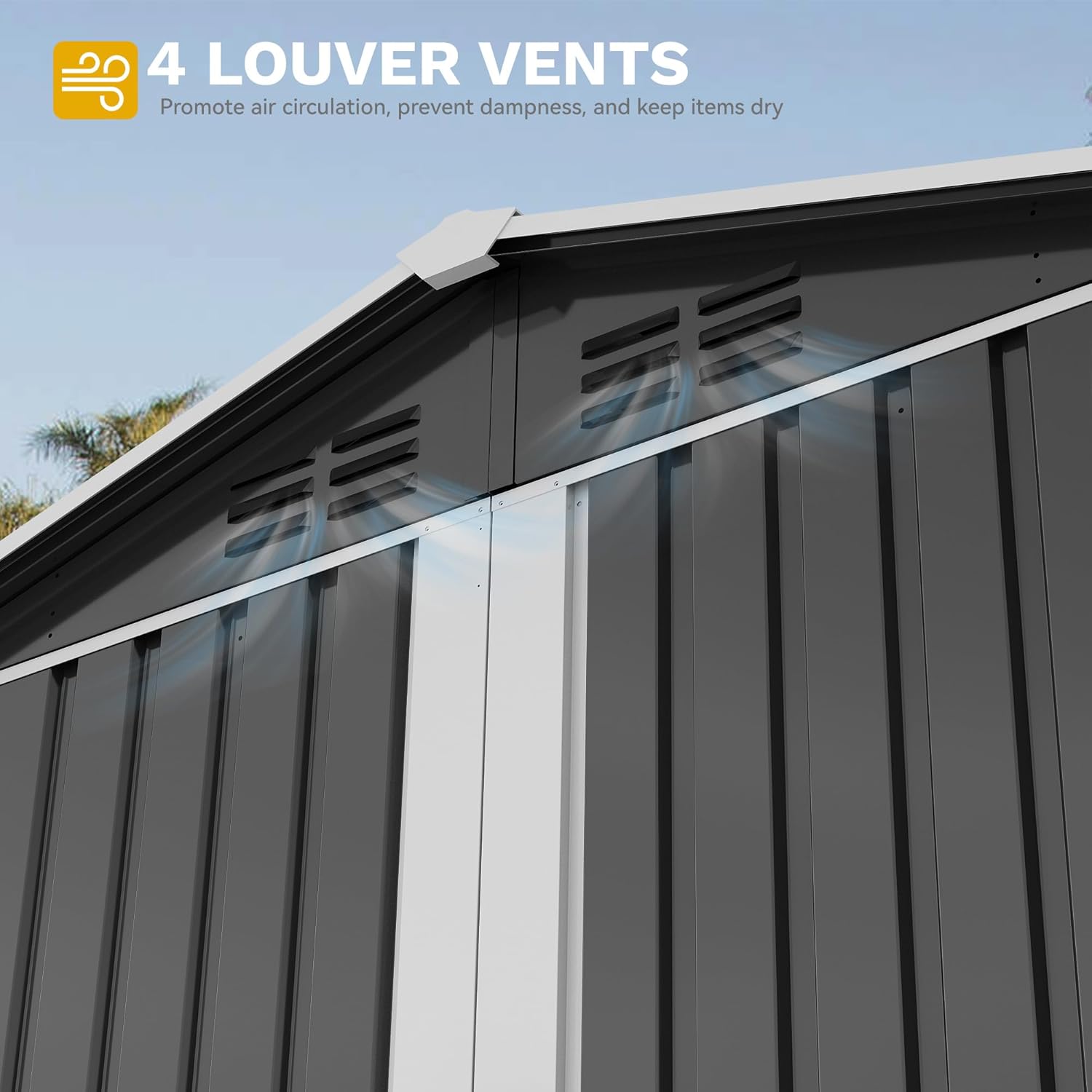- Secure & Lockable: The garden shed is equipped with a lockable door to enhance security; Choose a suitable lock and effectively prevent theft or unauthorized access to your tools and belongings; The double sliding doors offer convenient entry and exit