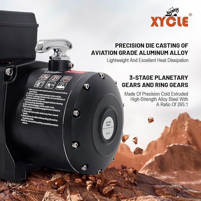 - 【Precision Manufacturing】XYCLE Traction Winch IP 67 Grade Waterproof and Dustproof Grade 3 Planetary gears are made of precision cold-extruded high-strength alloy steel 265:1 gear ratio outputs smooth and strong power Gearboxes are made of aerospace-grade aluminum alloy precision die-casting with lightweight and good heat dissipation performance.