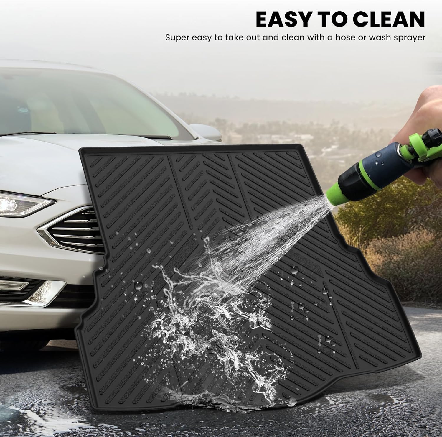 - FIRM YET FLEXIBLE - These durable Fusion cargo mats & trunk mat Raised edges all the way around and have been upgraded to the use of innovative material, allowing our floor liners to last long, and way more durable that they won't curl or end up buckling.