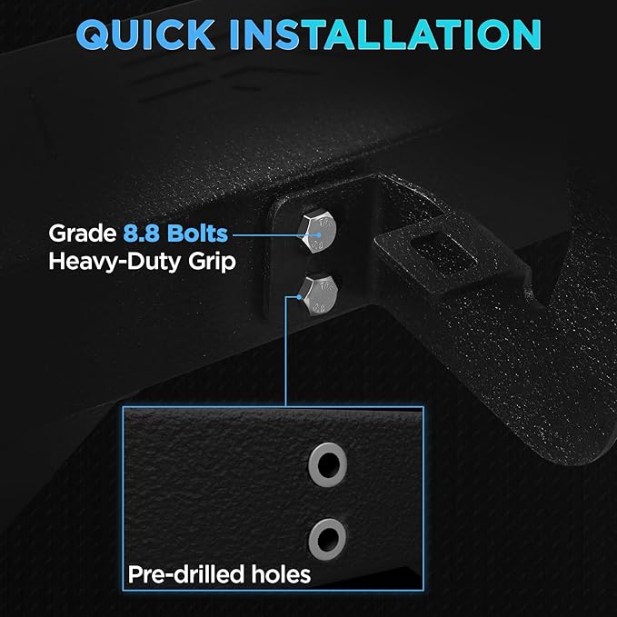 - Easy to Install: Bolt-on installation without no drilling or cutting. Packaged Box includes 2 running boards, brackets, installation instructions and other hardware you need.