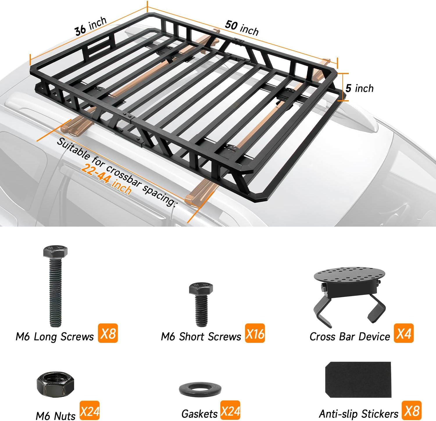 NIHAO 50"x36"x5" Heavy Duty Roof Rack Cargo Carrier, Universal Car Top Luggage Basket for SUV, Truck, RV, Pickup, Holds Up to 250 Lbs