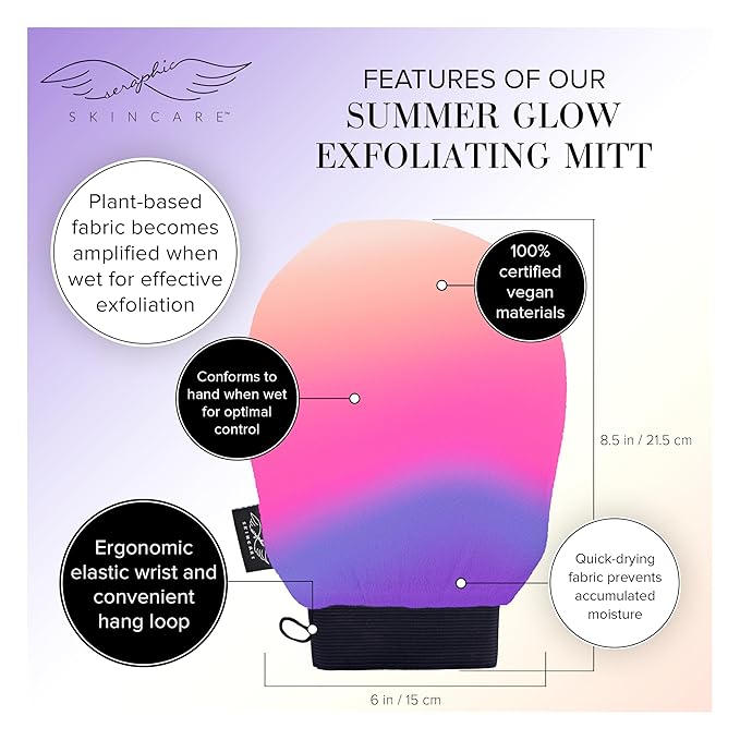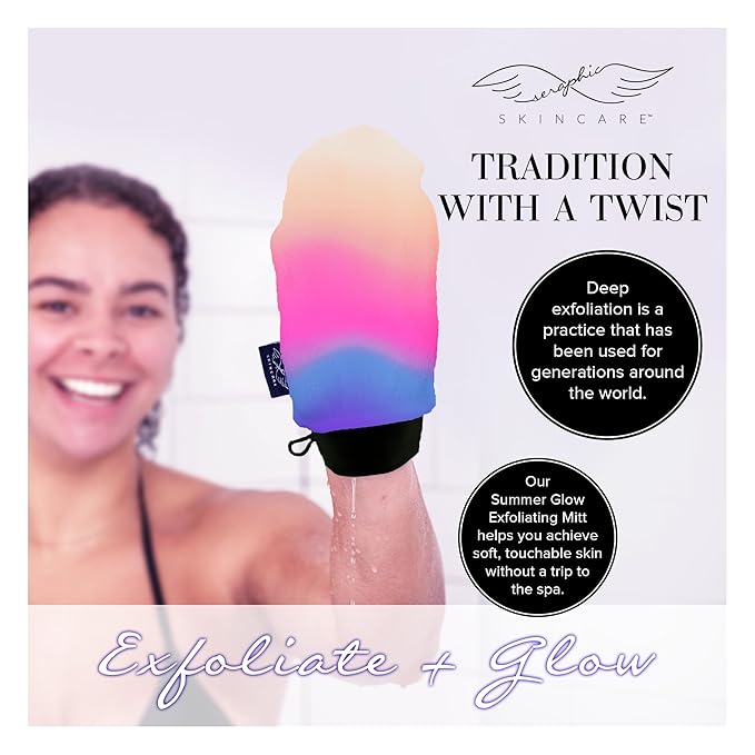 Seraphic Skincare (Summer Glow) Premium Exfoliating Mitt for Body 1pc– 100% Vegan Viscose Traditional Body Scrub Glove Kessa Korean Washcloth – Body Exfoliator for Self-Tan Removal & Keratosis Pilaris