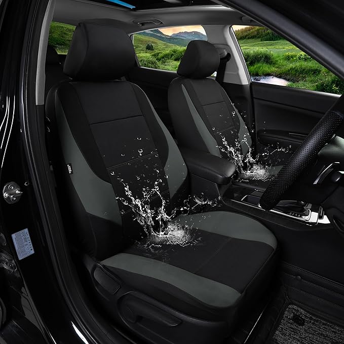 GIANT PANDA Neoprene Front Car Seat Covers, Leak-Proof & Waterproof Car Seat Protector Fit 95% Cars Trucks Sendans Jeep Van SUV Pickup(Grey/Gary+Black) 2PCS