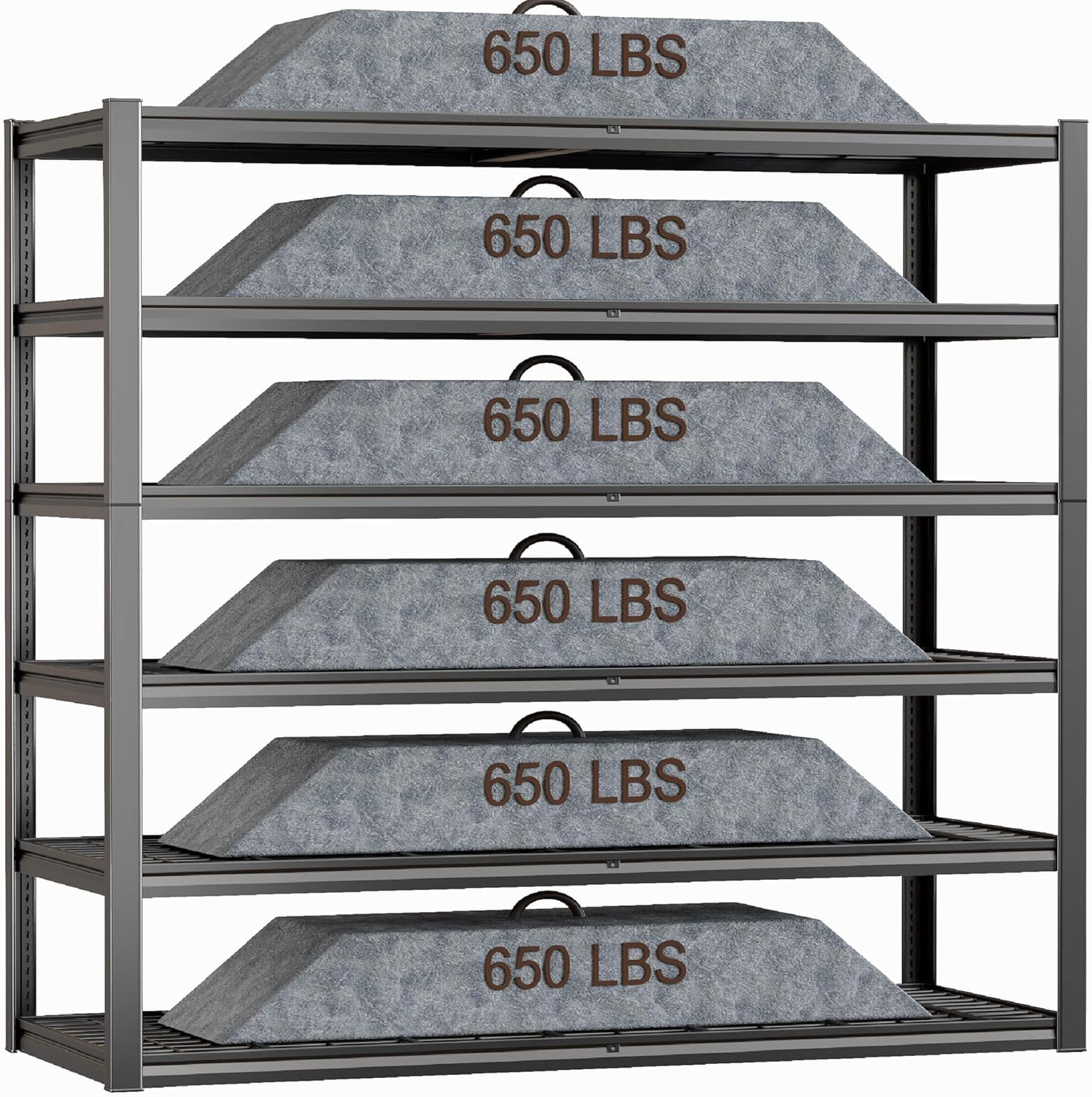 - ăHeavy-Duty Reinforced Metal ConstructionâăCrafted with extra-thick, widened, and hardened steel, this 6-tier garage shelving unit delivers unmatched durability for long-term storage. The all-metal build ensures robust support, ideal for heavy tools, equipment, and bulky items.