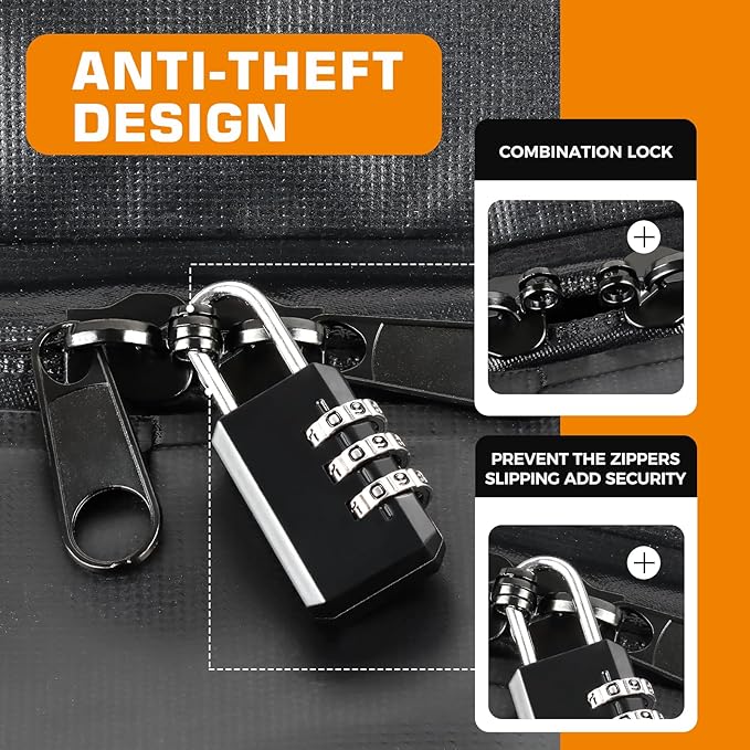- ANTI-SLIP & SECURITY - roof rack storage includes 8 reinforced straps,6 door hooks, Anti-Slip Mat, combination lock, That not only prevents from sliding, but also increases the security of your luggage; Whether you're driving on the highway or over rough terrain, non-slip mat will keep your cargo bags firmly in place prevents paint scratches, prevents excessive noise, Enhances driving safety. give you peace of mind while on the road steer