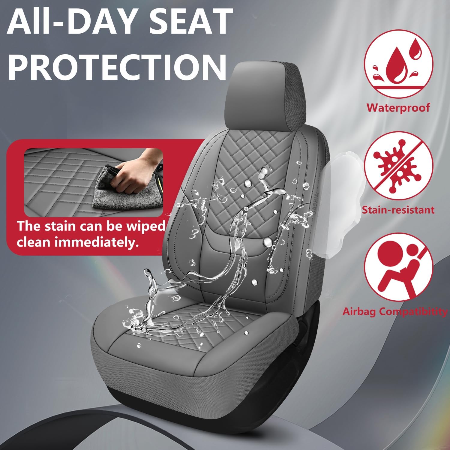 - Sierra waterproof front leather seat covers are perforated in the center, more breathable and stylish. Simple and unique 3D diamond design gives your old or scratched truck seats a new look while offering protection against accidental spills and moisture.