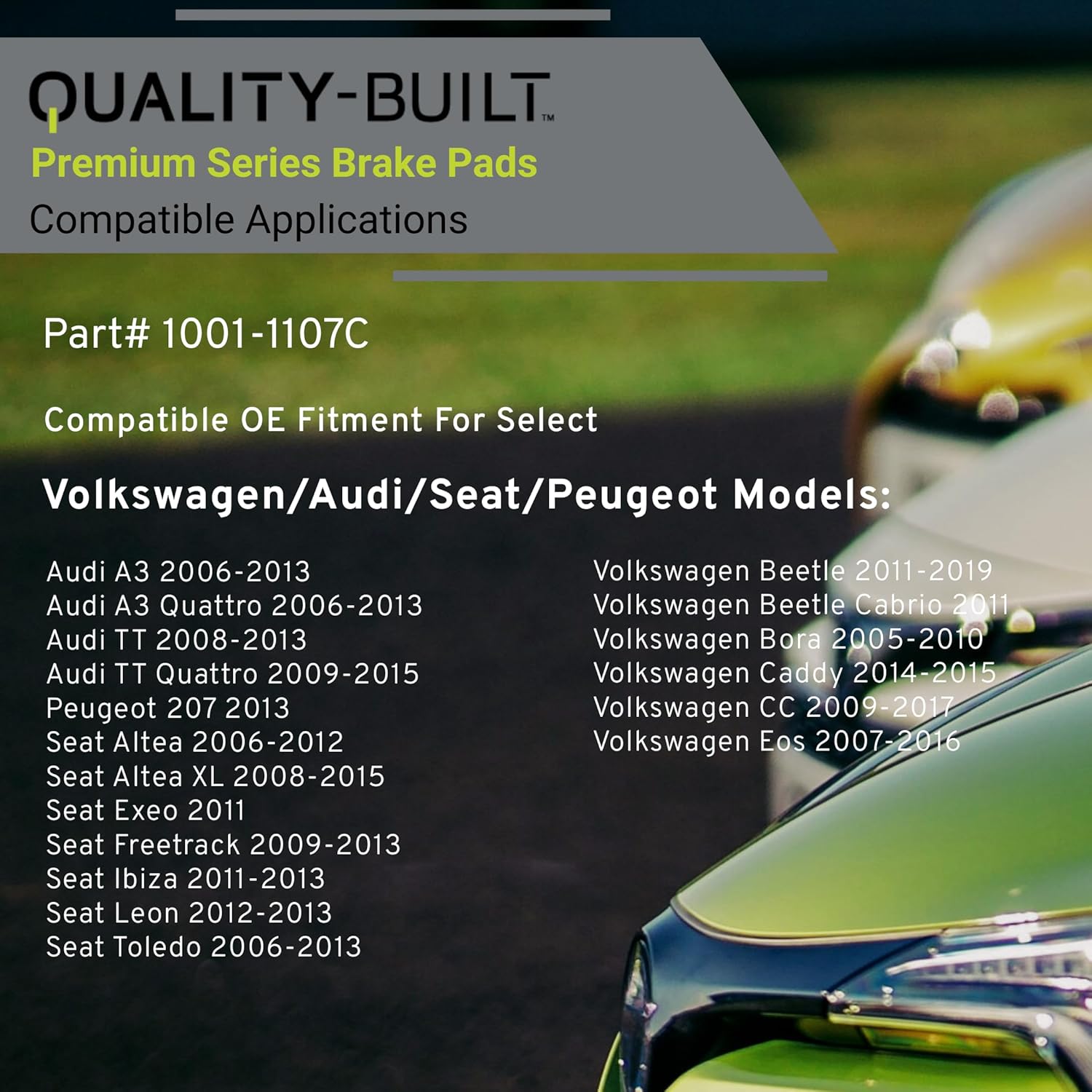 Premium Ceramic Front Brake Pads (1001-1107C) Compatible with 2005-2019 Audi/Volkswagen (A3 Quattro/Beetle/GLI/Golf/Golf SportWagen/GTI/Ibiza/Jetta/Passat/Rabbit/TT & More)