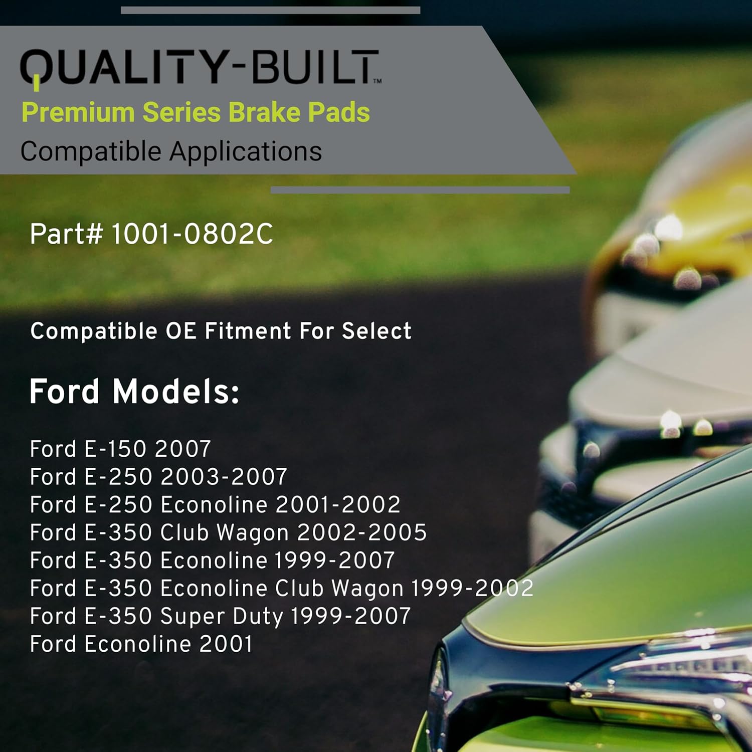 Premium Ceramic Rear Brake Pads (1001-0802C) Compatible with 1999-2007 Ford (E-150/E-250/E-250 Econoline/E-350 Club Wagon/E-350 Econoline/E-350 Econoline Club Wagon/E-350 Super Duty)