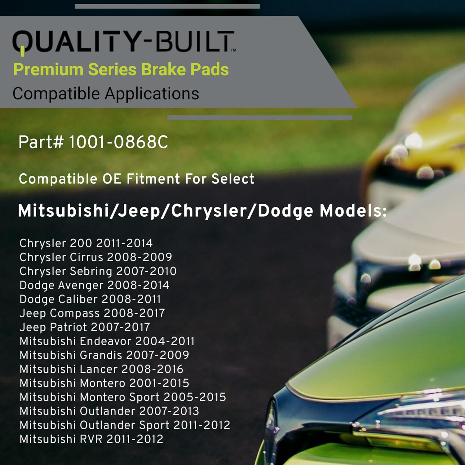 Premium Ceramic Rear Brake Pads (1001-0868C) Compatible with 2001-2017 Chrysler/Dodge/Jeep/Mitsubishi (200/Avenger/Caliber/Cirrus/Compass/Endeavor/Grandis/Lancer/Montero/Outlander)
