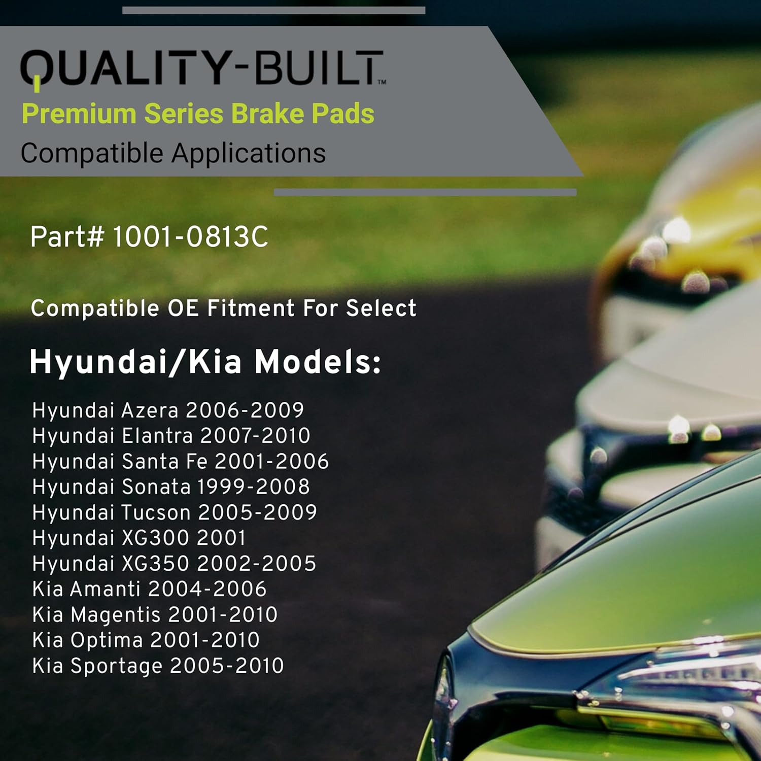 Premium Ceramic Rear Brake Pads (1001-0813C) Compatible with 1999-2010 Hyundai/Kia (Amanti/Azera/Elantra/Magentis/Optima/Santa Fe/Sonata/Sportage/Tucson/XG300/XG350)