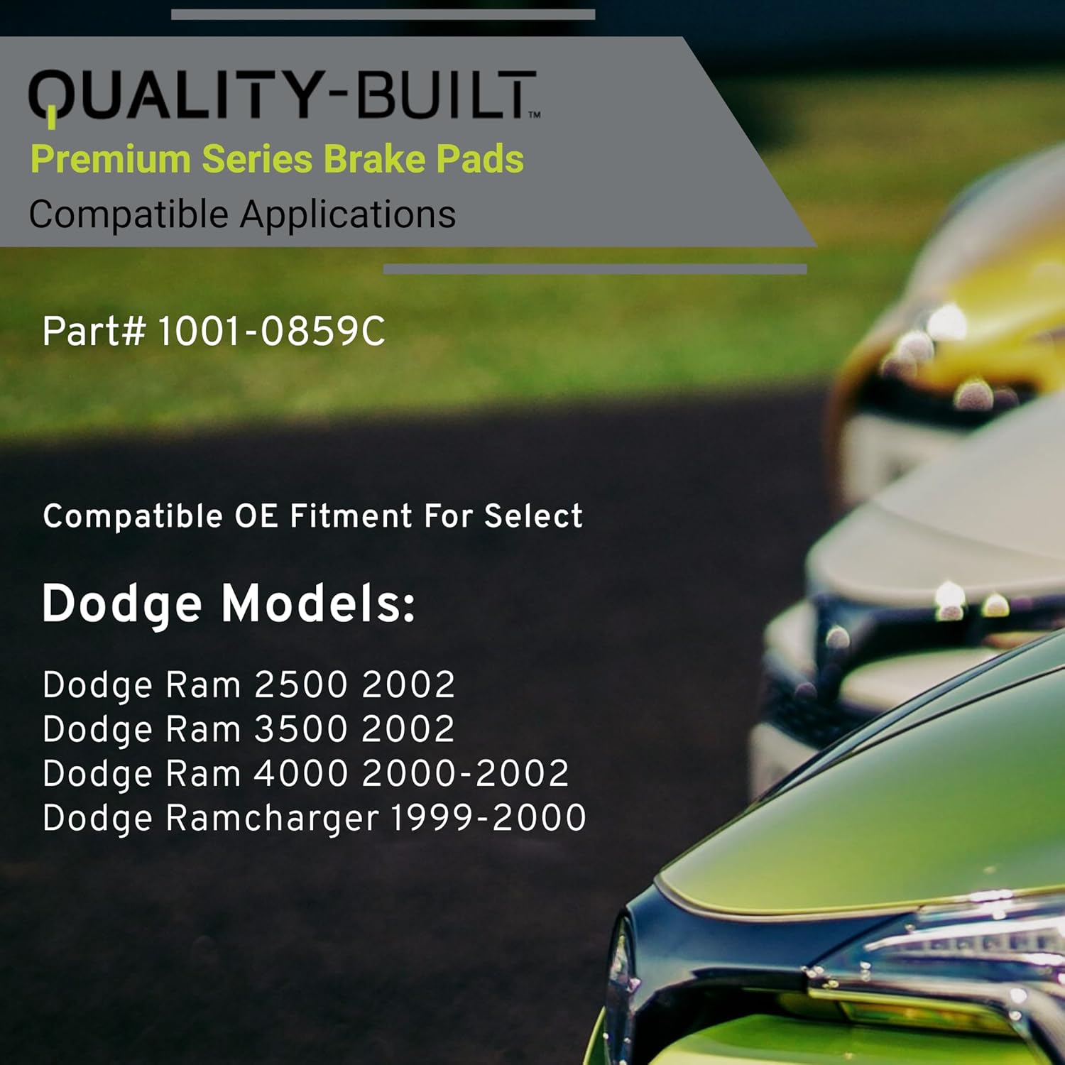 Premium Ceramic Front Brake Pads (1001-0859C) Compatible with Dodge Ram 2500 2002-2002, Dodge Ram 3500 2002-2002, Dodge Ram 4000 2000-2002, Dodge Ramcharger 1999-2000