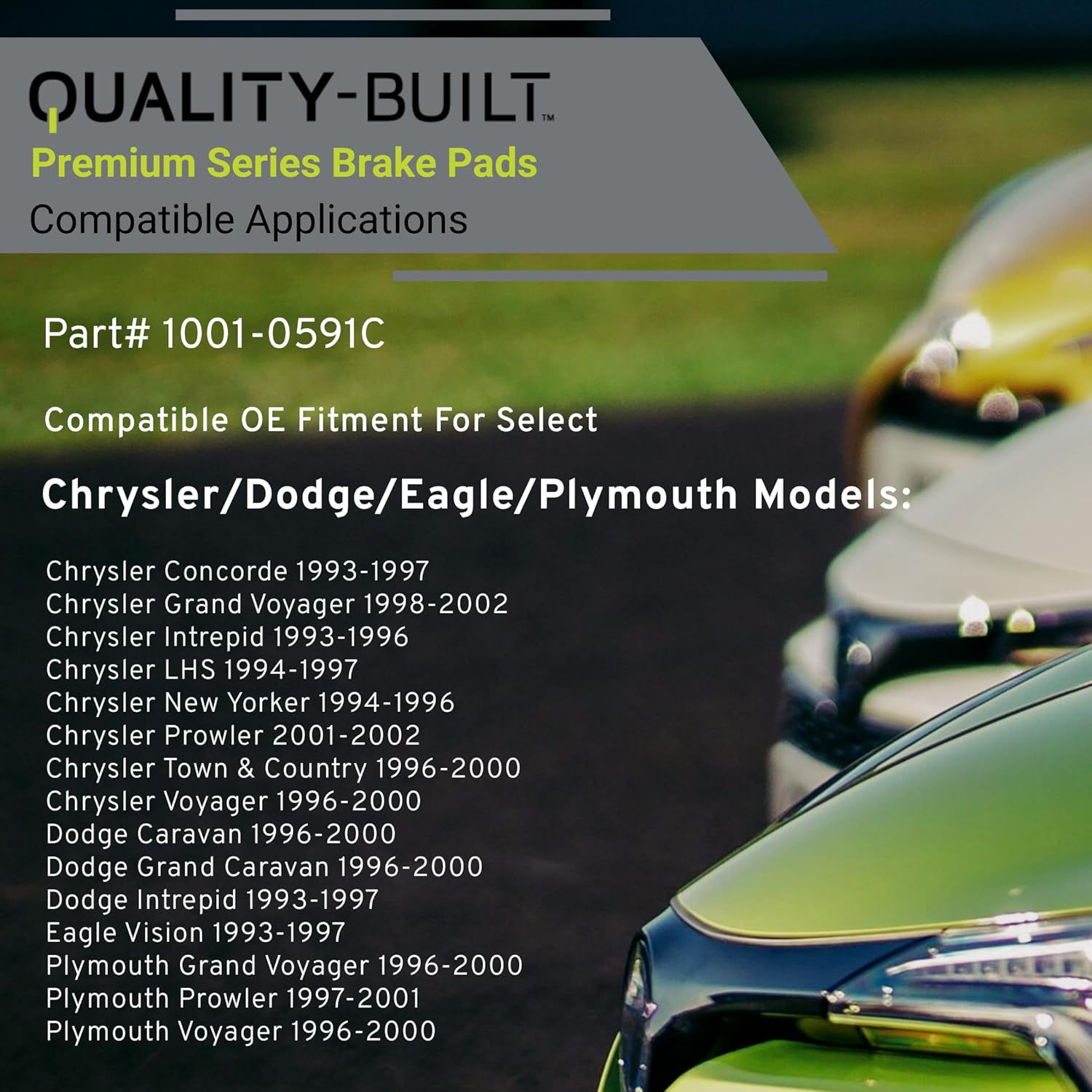 Premium Ceramic Front Brake Pads (1001-0591C) Compatible with 1993-2002 Chrysler/Dodge/Eagle/Plymouth (Caravan/Concorde/Grand Caravan/Grand Voyager/Intrepid/LHS/New Yorker/Prowler)
