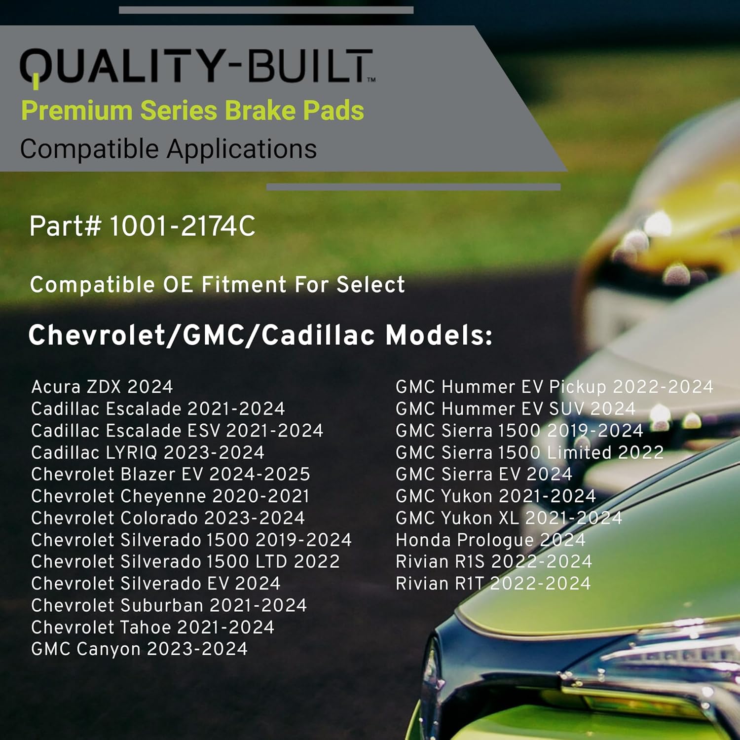 Premium Ceramic Rear Brake Pads (1001-2174C) Compatible with 2019-2025 Acura/Cadillac/Chevrolet/GMC (Cheyenne/Colorado/Escalade/Hummer EV/Sierra/Silverado/Suburban/Tahoe/Yukon & More)