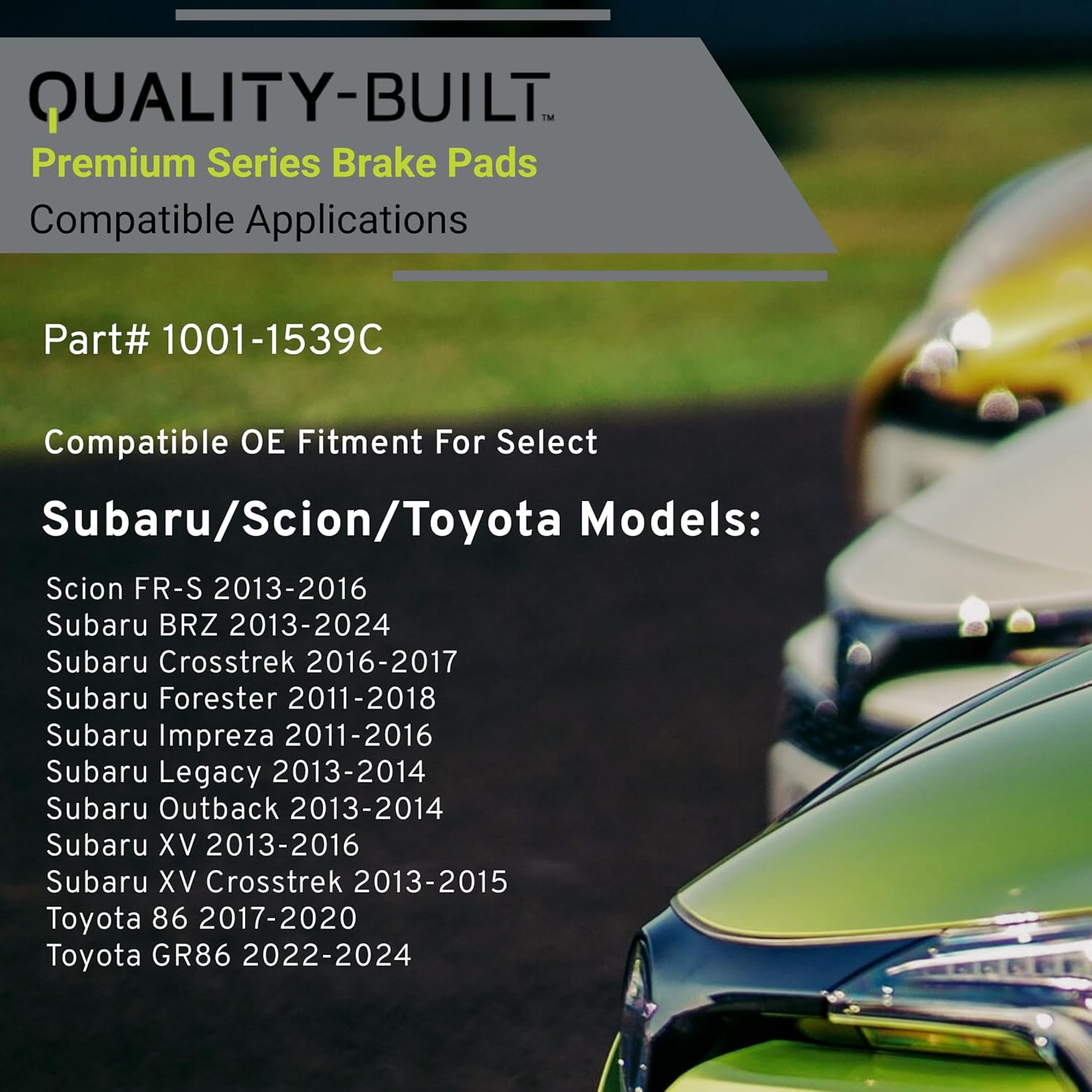 Premium Ceramic Front Brake Pads (1001-1539C) Compatible with 2011-2024 Scion/Subaru/Toyota (86/BRZ/Crosstrek/Forester/FR-S/GR86/Impreza/Legacy/Outback/XV/XV Crosstrek)