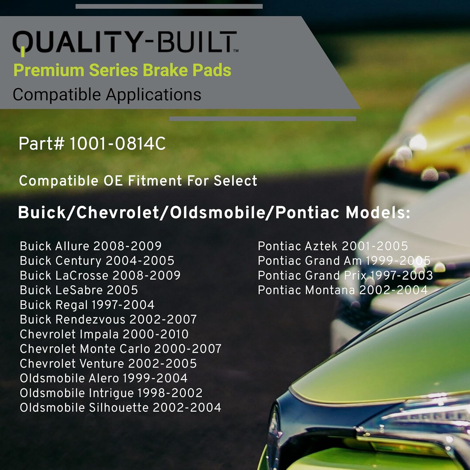 Premium Ceramic Rear Brake Pads (1001-0814C) Compatible with 1997-2010 Buick/Chevrolet/Oldsmobile/Pontiac (Alero/Allure/Aztek/Century/Grand Am/Grand Prix/Impala/Intrigue & More)