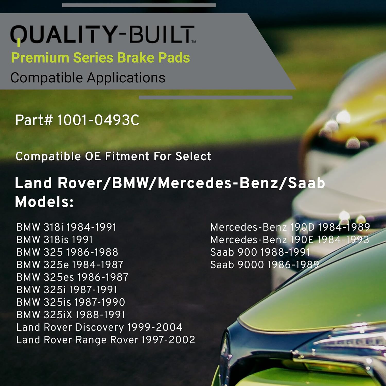 Premium Ceramic Front Brake Pads (1001-0493C) Compatible with 1984-2004 BMW/Land Rover/Mercedes-Benz/Saab (190D/190E/318i/318is/325/325e/325es/325i/325is/325iX/Discovery/Range Rover)
