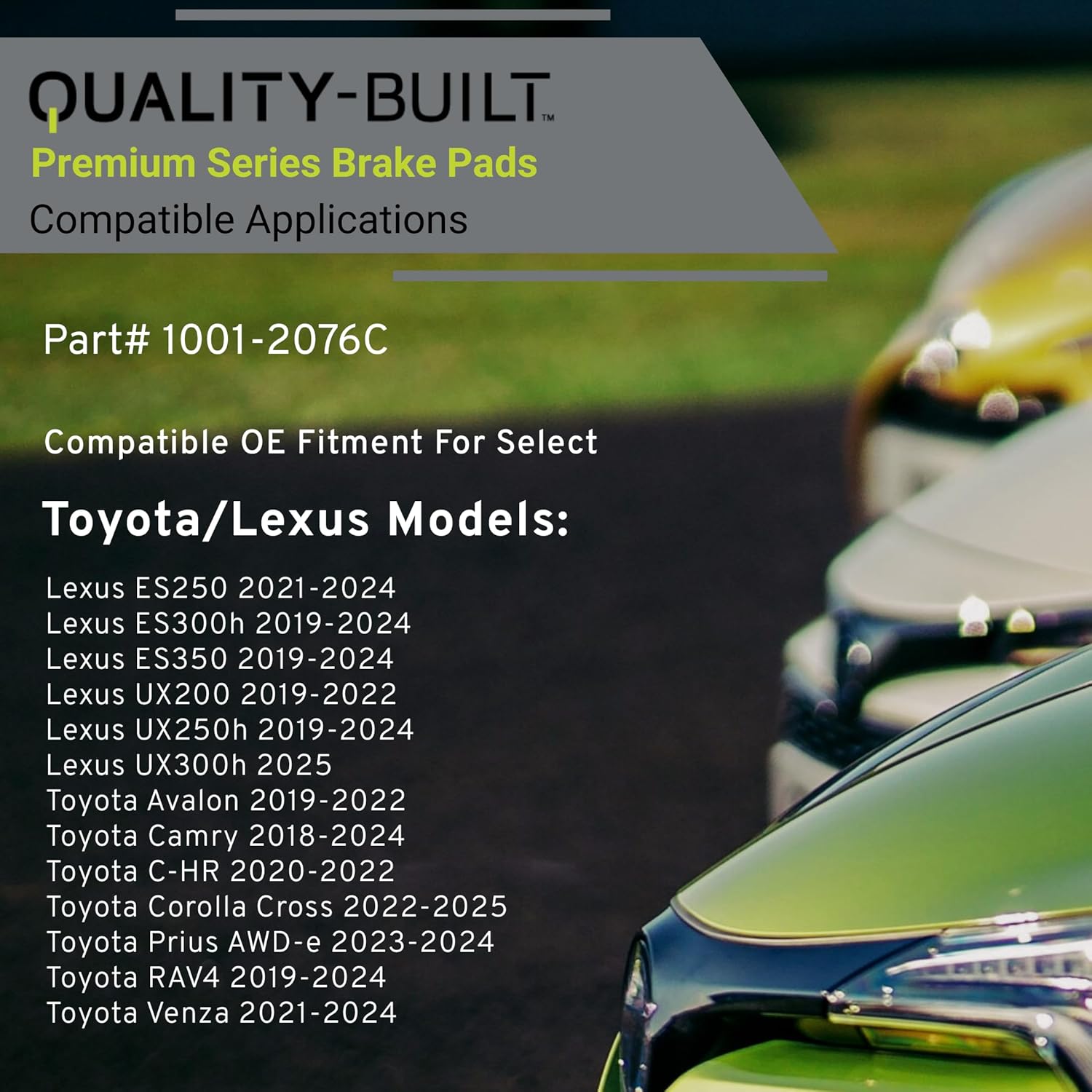 Premium Ceramic Front Brake Pads (1001-2076C) Compatible with 2018-2025 Lexus/Toyota (Avalon/Camry/C-HR/Corolla Cross/ES250/ES300h/ES350/Prius AWD-e/RAV4/UX200/UX250h/UX300h/Venza)