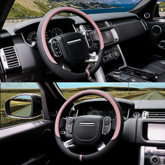 - Breathable Design with Non-Slip Grip: Made of premium perforated leather, this cubre volantes para carros enhances airflow (breathable material) while providing a non-slip surface for secure driving. Resists sweat and extreme temperatures, ensuring safety in rainy or hot climates. A must-have car accessory for road trips and daily commutes